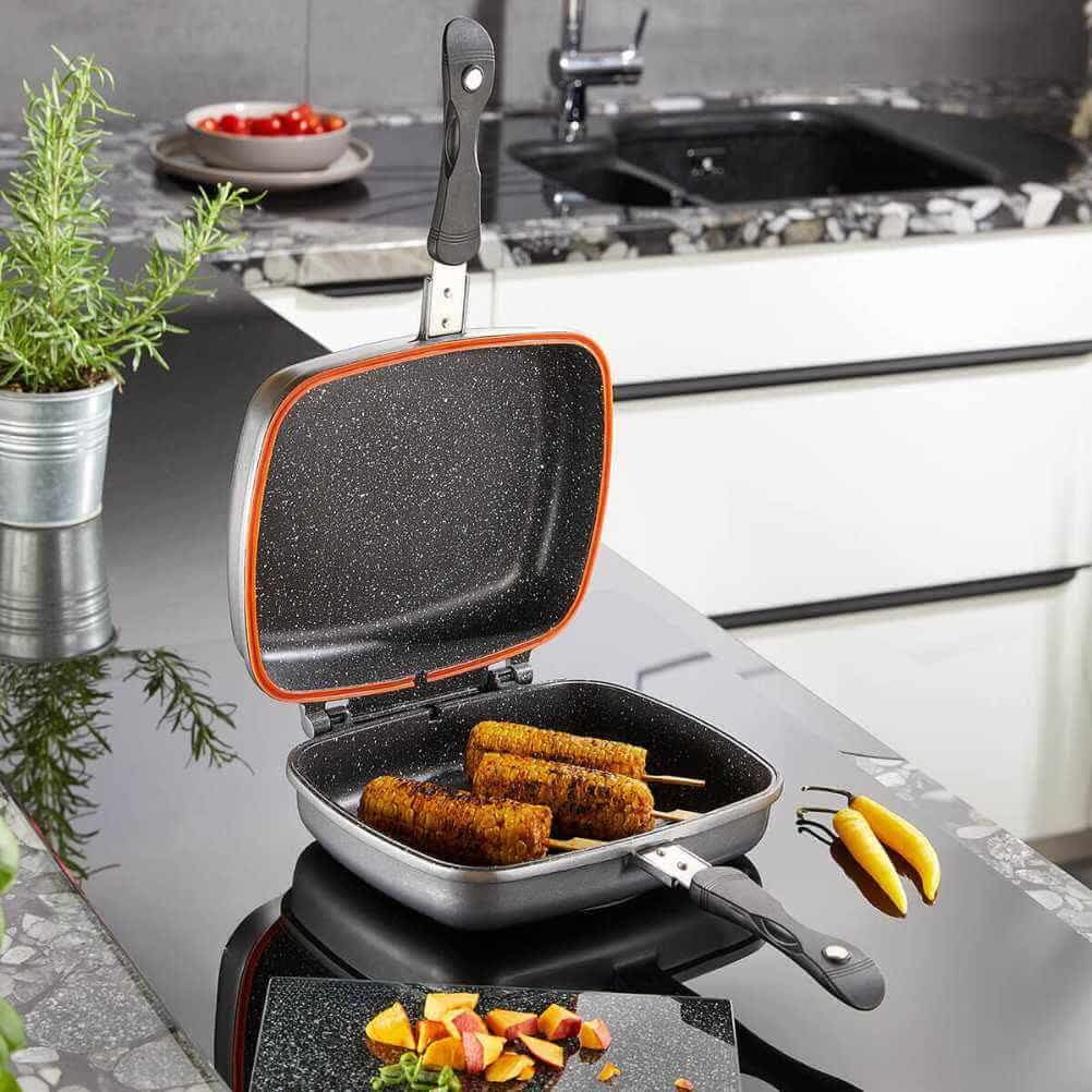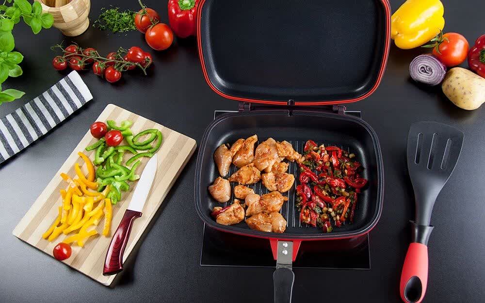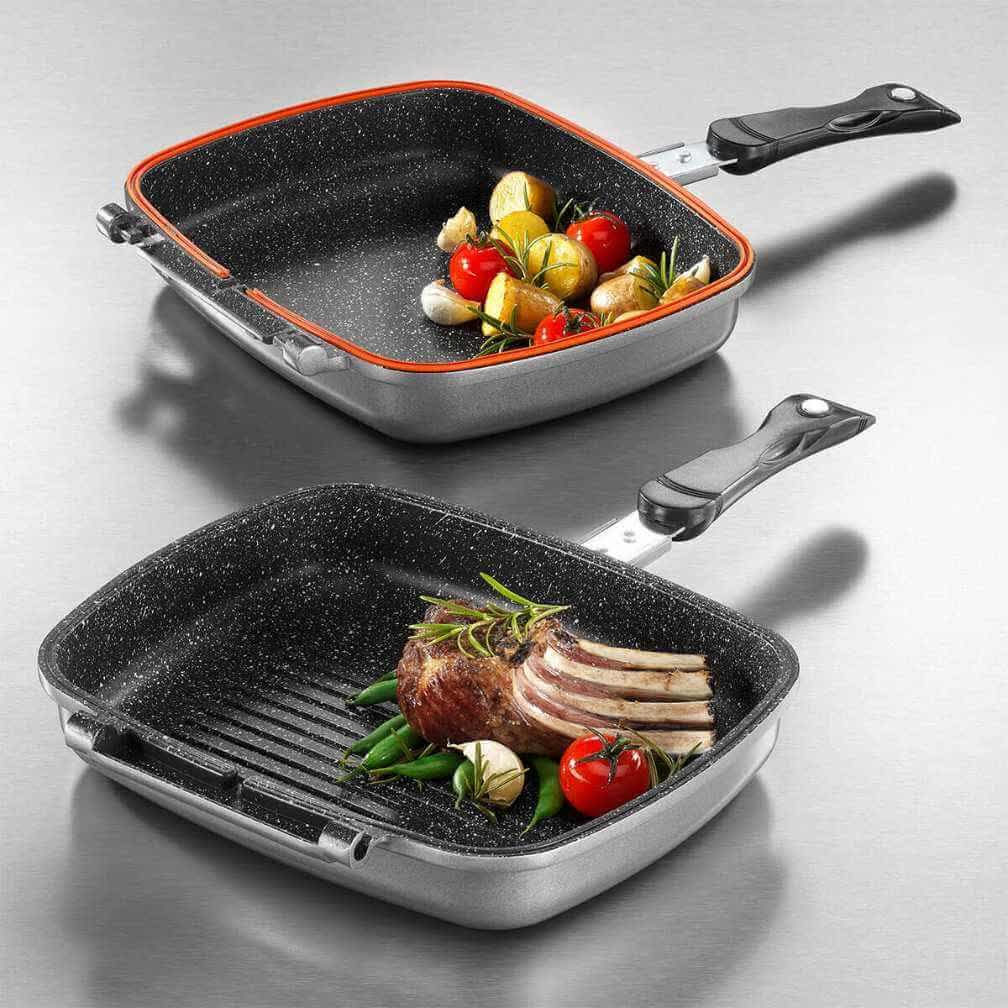 برند ام جی اس برای عاشقان غذایهای سرخ کرده که سلامت خود را در اولویت قرار میدهند، ماهیتابه دو طرفه را تولید کرده که با سطح گرانیتی و نچسب خود، احتیاج به روغن ندارد و شما میتوانید تمامی غذاهای رژیمی خود را با خیال راحت در این تابه دوطرفه بپزید.