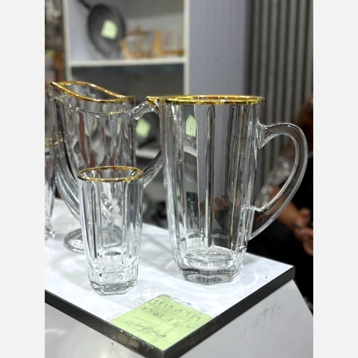 جنس پارچ و لیوانها همه از جنس بلور با دوام و شفاف است. به همین دلیل با خرید این سرویس دیگر دغدغه هماهنگ کردن آن را با سایر ظروف نخواهید داشت.