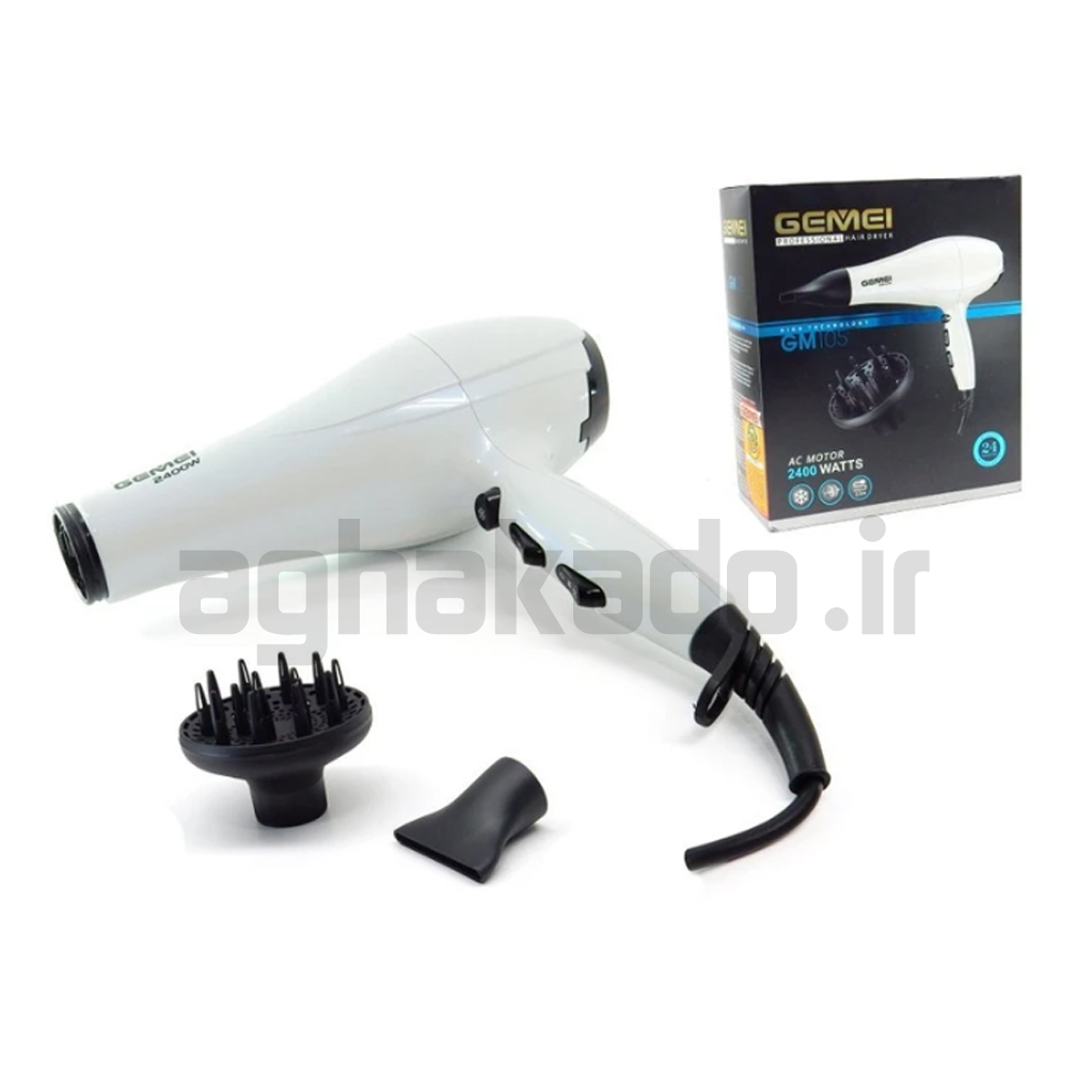 کابل 2.5 متری، وزن نسبتا کم و طراحی ارگونومیک کار کردن با این سشوار را سادهتر کرده است. سشوار جیمی مدل GM105به یک حلقه آویختن مجهز شده است تا در مواقعی که از آن استفاده نمیکنید، از نظمدهنده آویزان کنید. سشوار GM105از مدلهای مقرونبهصرفه شرکت جیمی است که فناوری تولید یون نیز دارد.