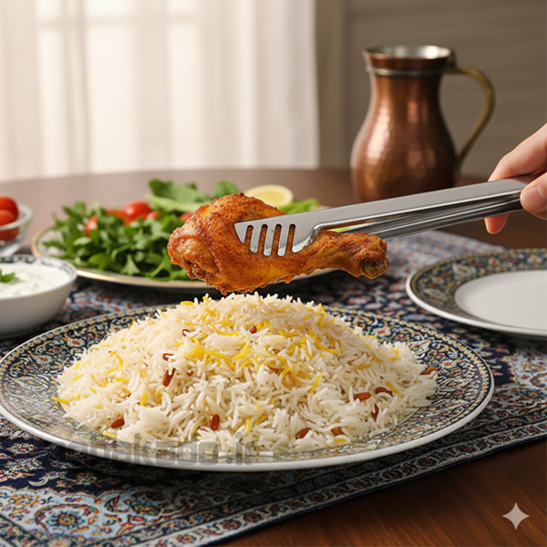 | کاربری آسان و سرو شیک | طراحی یکپارچه و فنری آن باعث میشود که با کمترین فشار، مواد غذایی (به ویژه سالاد، سبزیجات، تکههای مرغ و نان) به آسانی برداشته و سرو شوند. برای مجالس و مهمانیها ظاهری رسمی و زیبا به میز میبخشد.