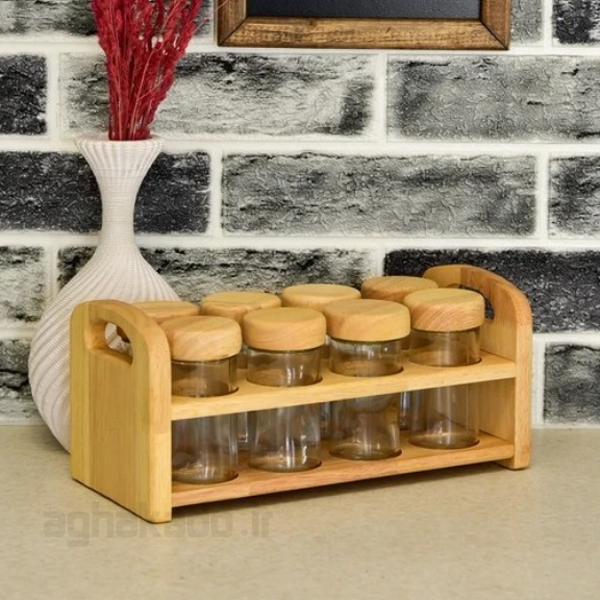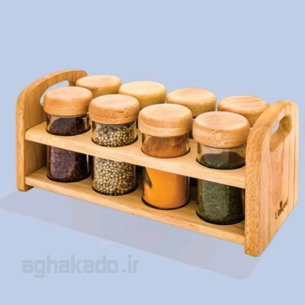شامل 8 عدد ظرف ادویه و پایه نگه دارنده